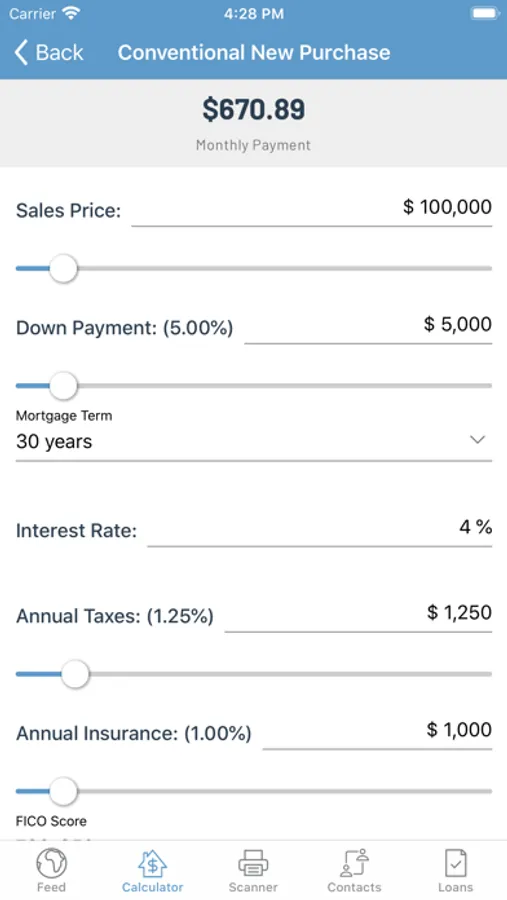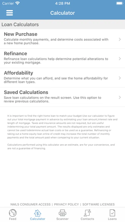 • Mortgage Calculator showing purchase and refinance scenarios to determine which product might be best for you