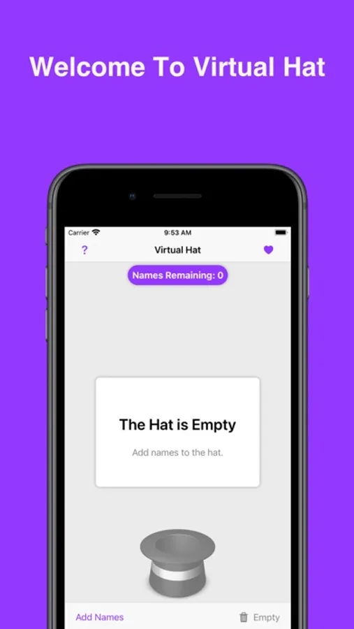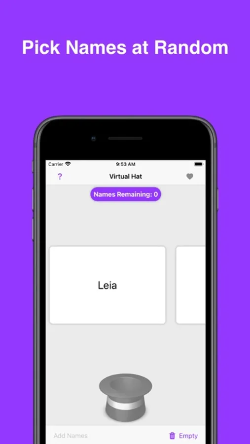 Virtual Hat is an application that was created to help make pulling names for a raffle, or getting a unique order for your fantasy draft simple and easy. The main features are:
