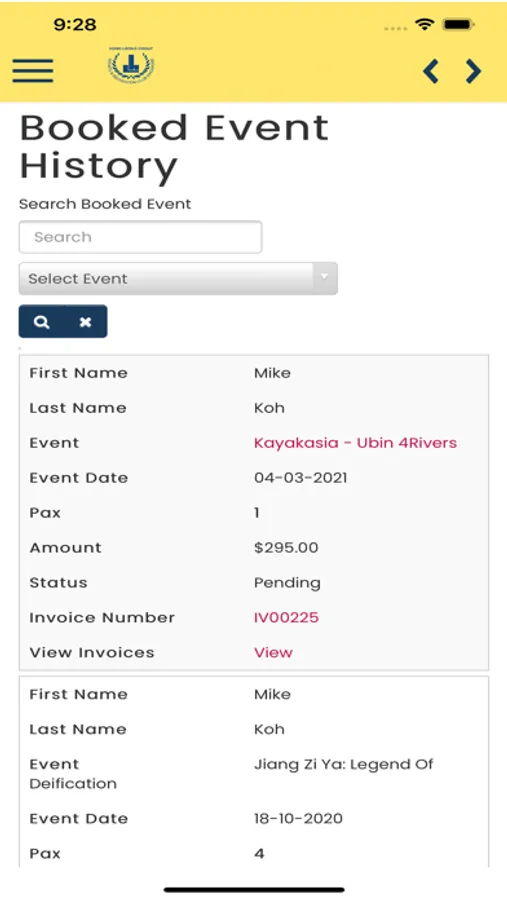 - View your past and current event/activity bookings."