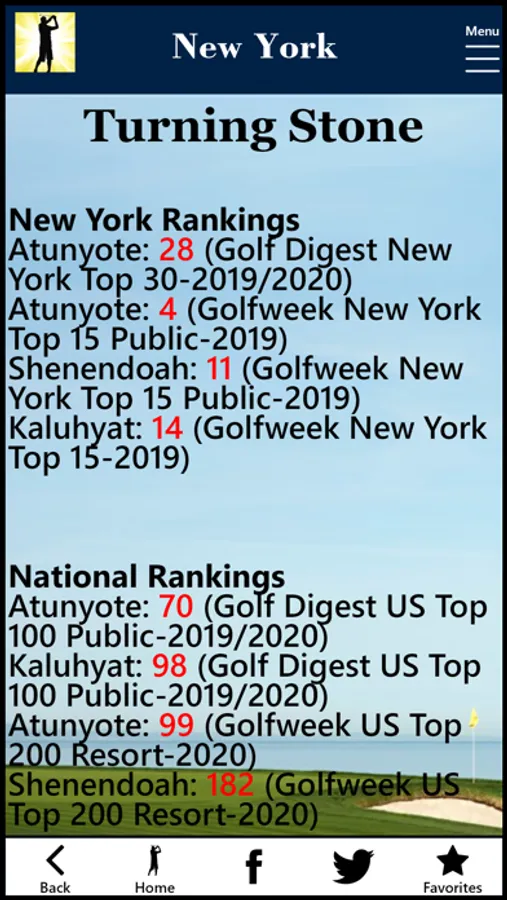 • Local and National Rankings by Golf Digest and Golfweek