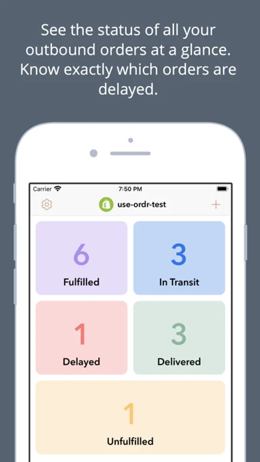 Easily see how may orders are in transit, delayed, delivered and unfulfilled on your dashboard.