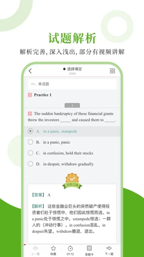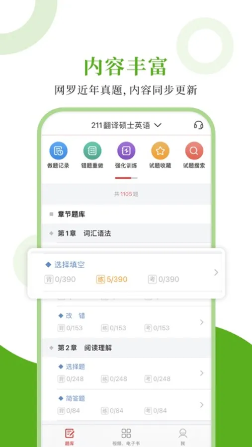 专为翻译硕士考试精心准备的考试配套题库,每一道试题都有答案解析,为考试提供了充分的复习准备,可随时随地学习练习,支持手机、平板多端同时使用。