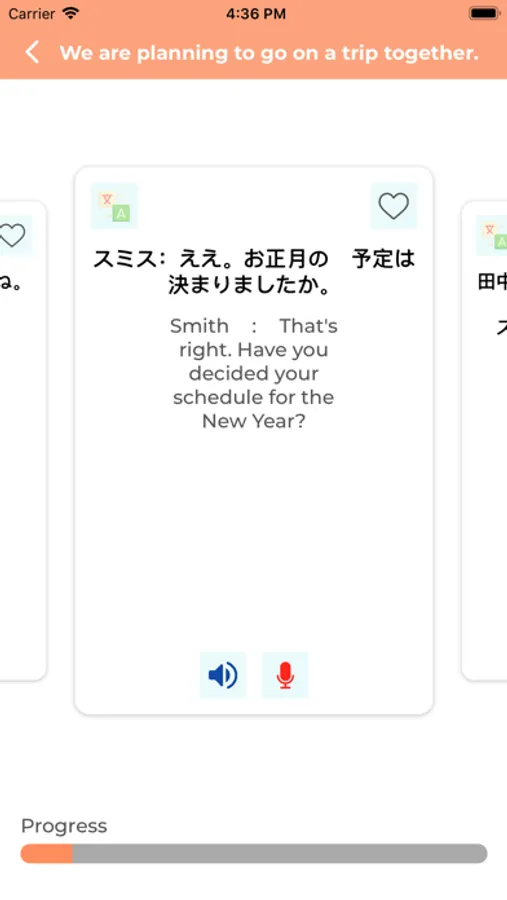 For that reason we have researched and gathered many communication situations, speech patterns in certain contexts which help support and shorten learning time for you. Let's experience and practice every day.