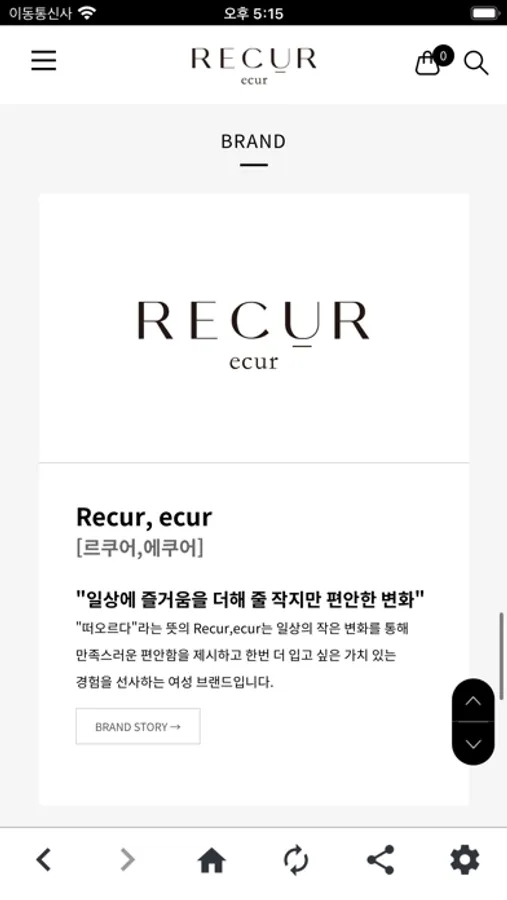 '떠오르다'라는 뜻의 Recur,ecur는 일상의 작은 변화를 통해 만족스러운 편안함을 제시하고 한 번 더 입고 싶은 가치 있는 경험을 선사하는 여성 브랜드입니다.