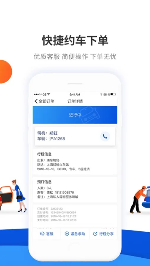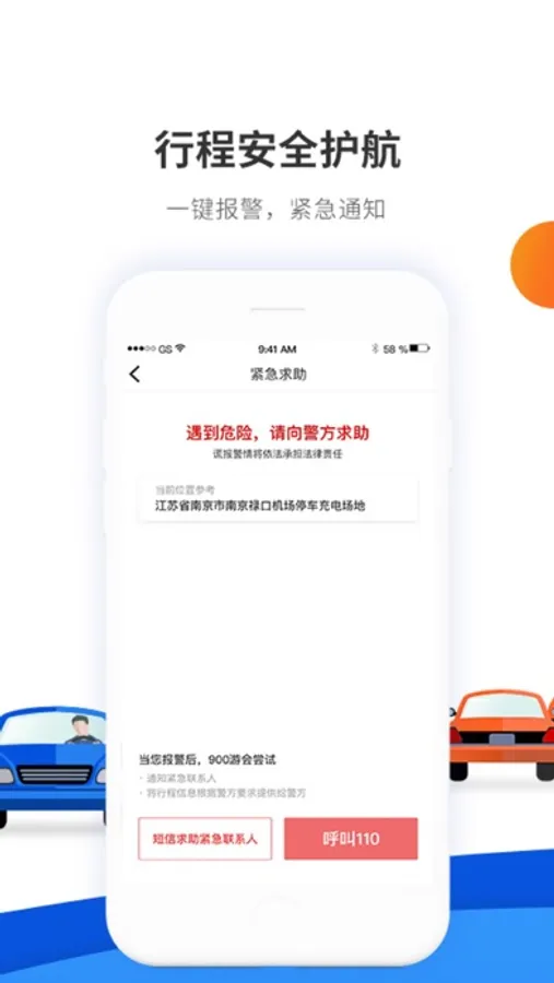 - 行程安全保障: 一键报警 行程分享 通知紧急联系人