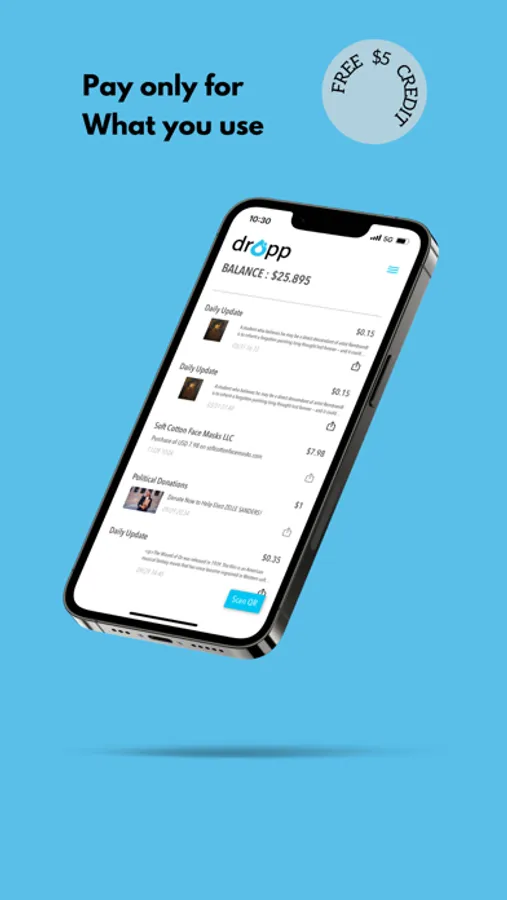 Dropp’s pay-per-use micropayment services gives users the power to purchase goods and services for as low as $0.01. Pay for a cup of coffee, parking to data access with ease.