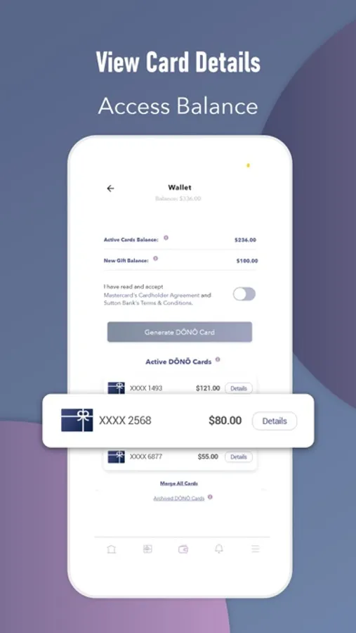 Gone are the days of cluttered wallets and lost gift cards. With DONO, you can easily consolidate your DONO gifts into one convenient Mastercard that can be added to your digital wallet for easy access and use.