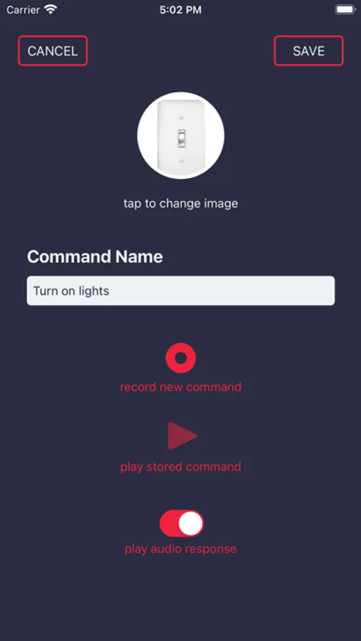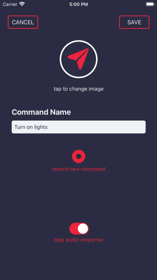 You simply open the app and record the command audio. Give them a name and save them. Then simply tap the play button on the command list to run the command without having to speak.