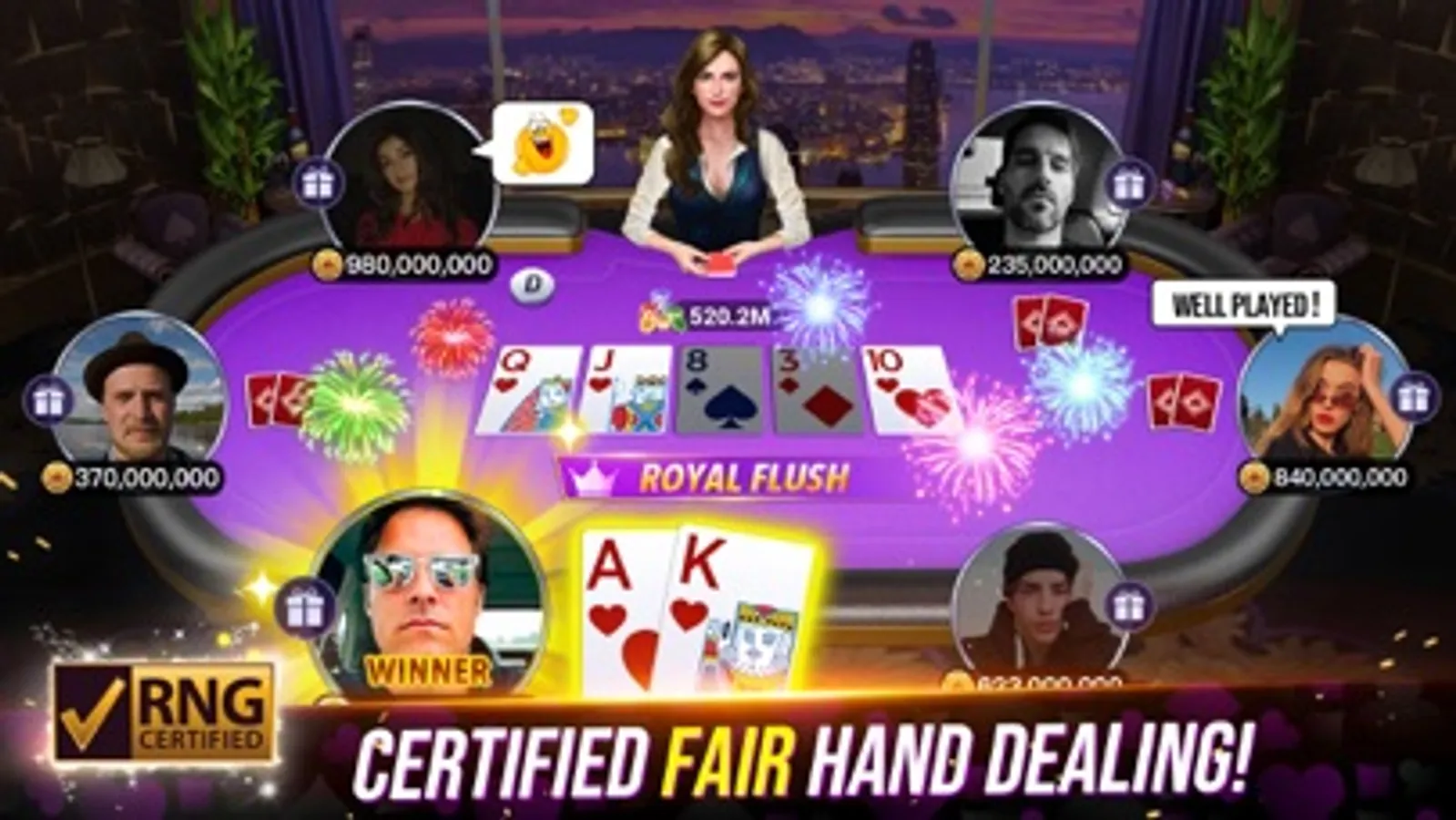 ● RNG Certified: The card shuffling algorithm used in Texas Hold‘em Poker and Omaha has been tested and certified by Gli Labs! You can check the certification by going to the in-game Settings > Certification!