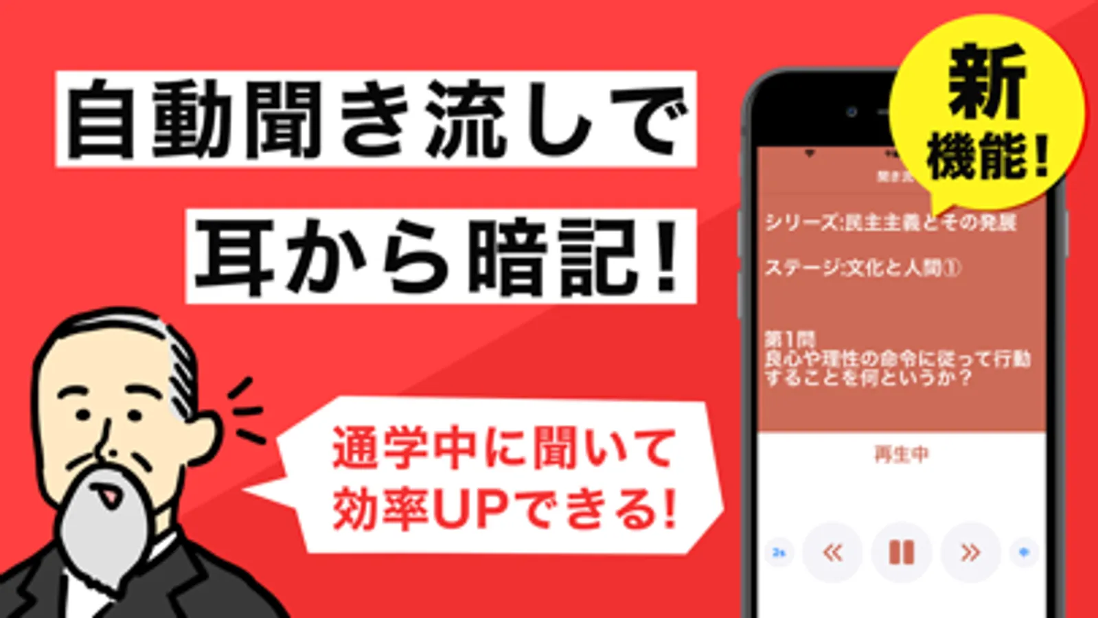 ・移動中でも簡単に使用できるように配慮し、政治経済に関する知識を問う問題が中心となっています。