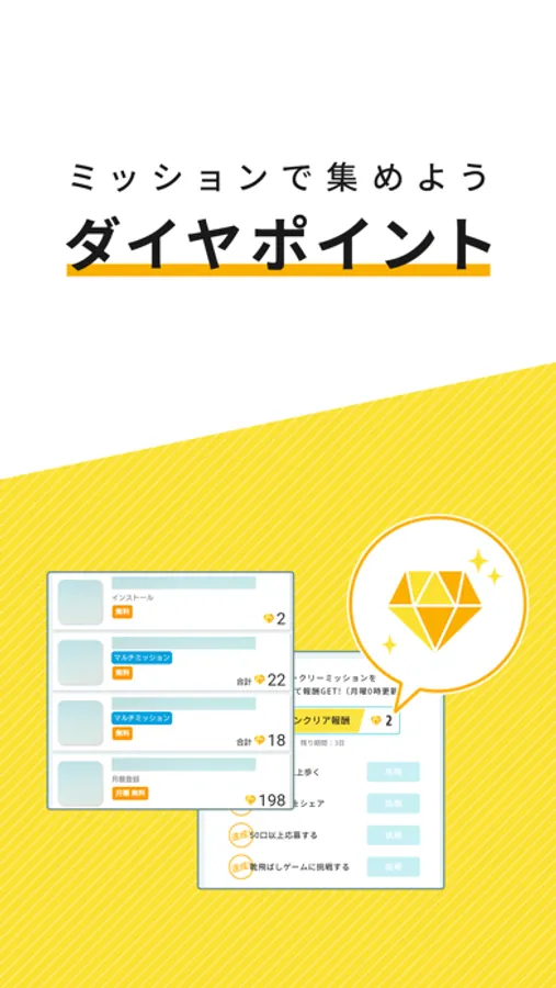 ・ウィークリーやミッションをクリアするとダイヤポイントを貯めることでポイ活ができます。