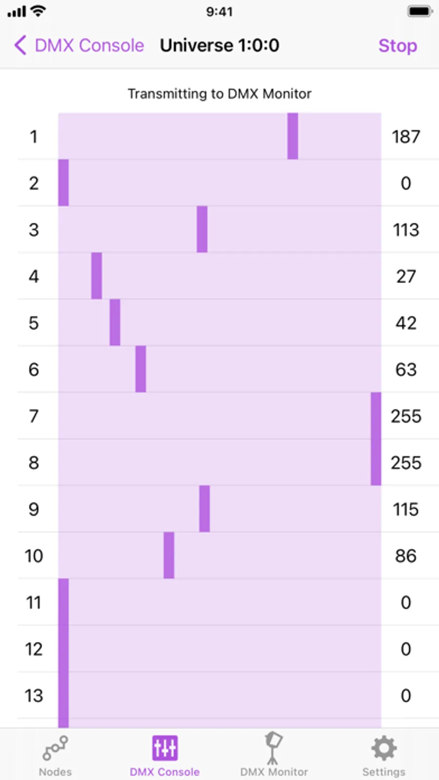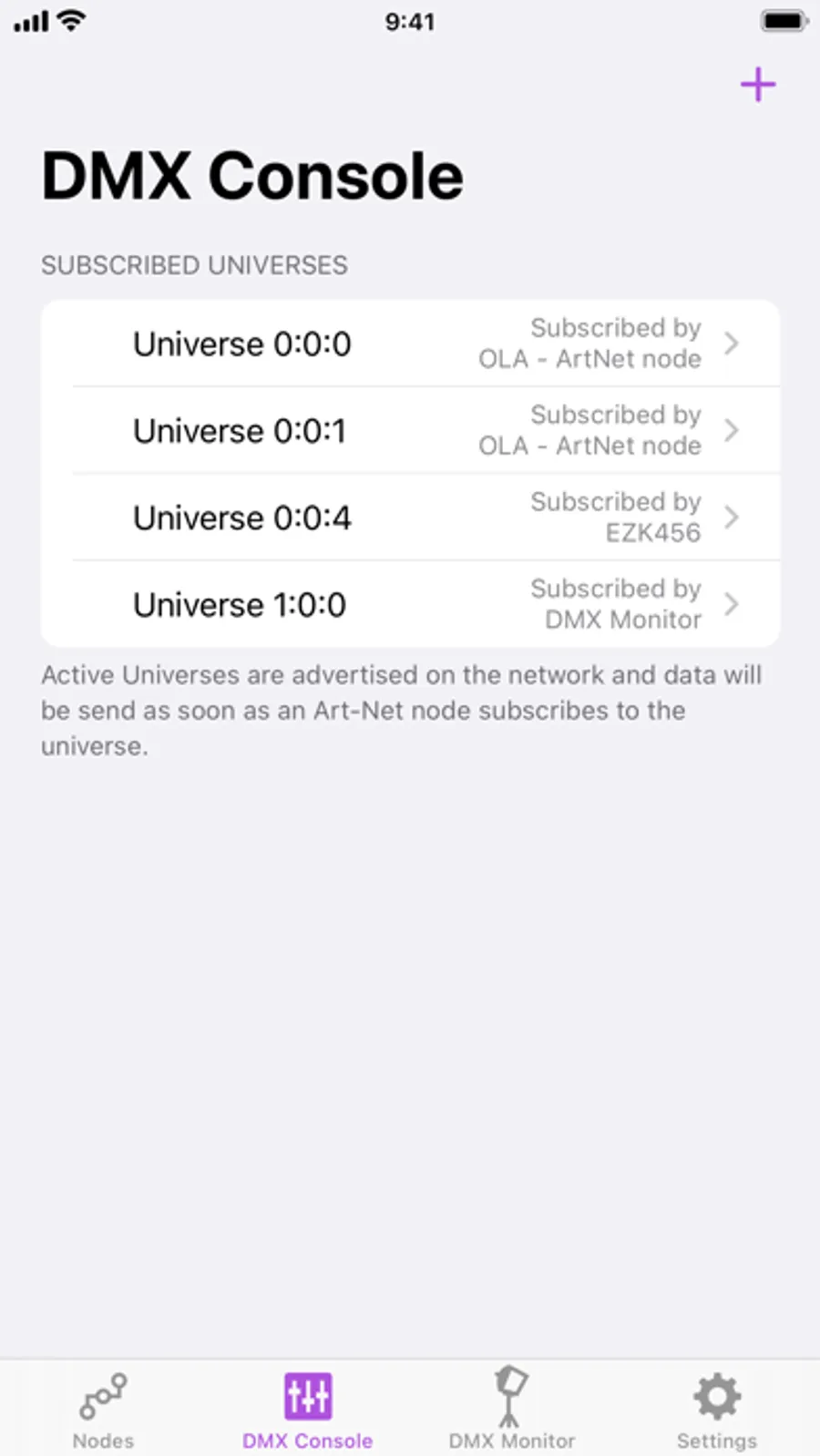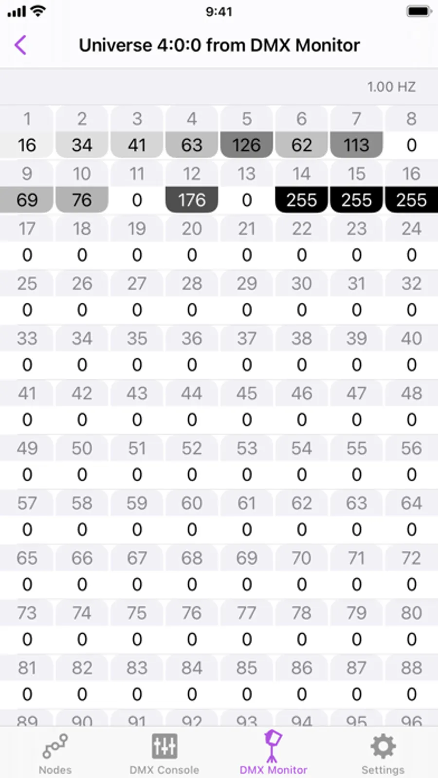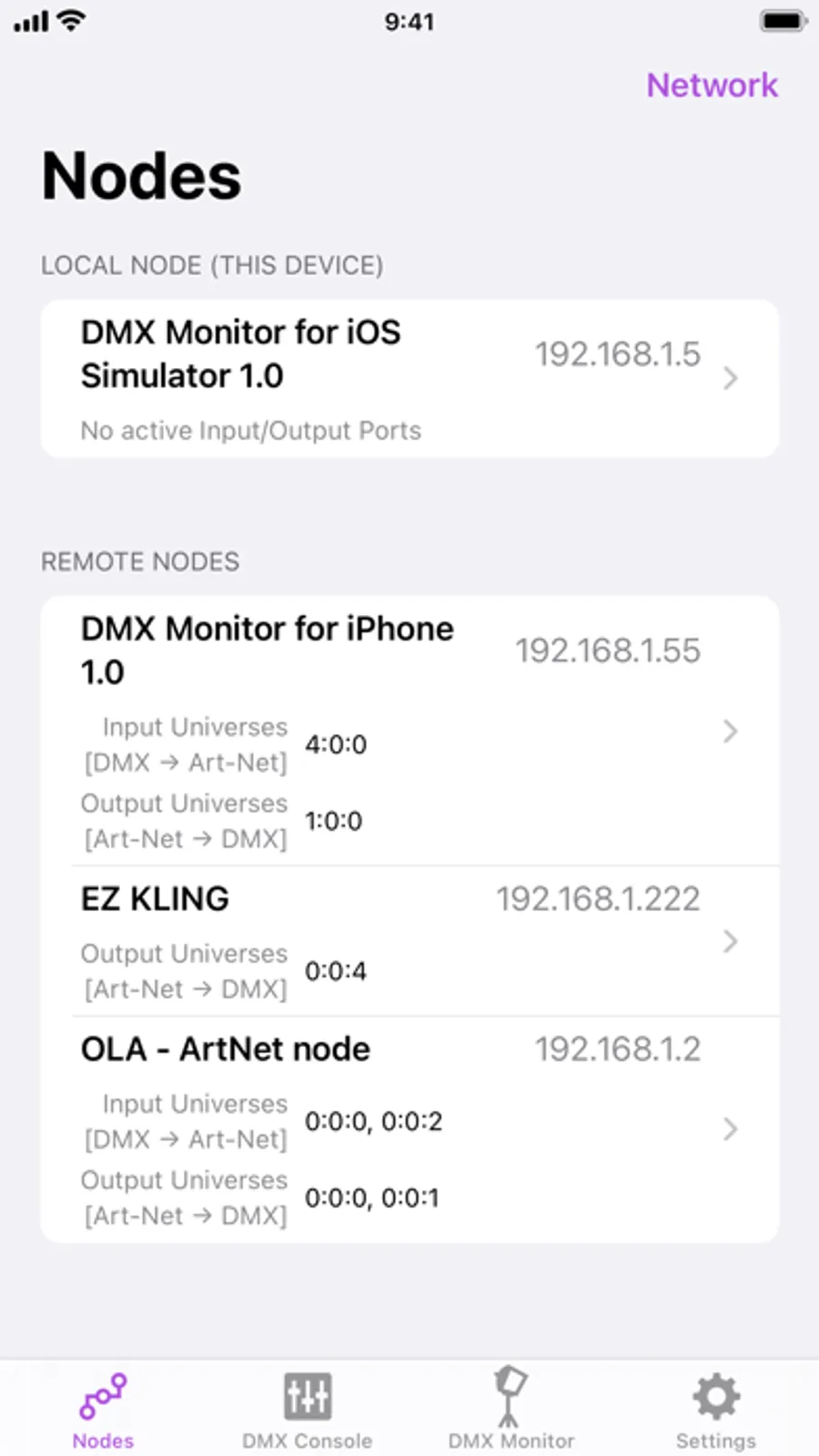 List and monitor the Art-Net™ devices on your network. Great to quickly test light fixtures, and consoles.