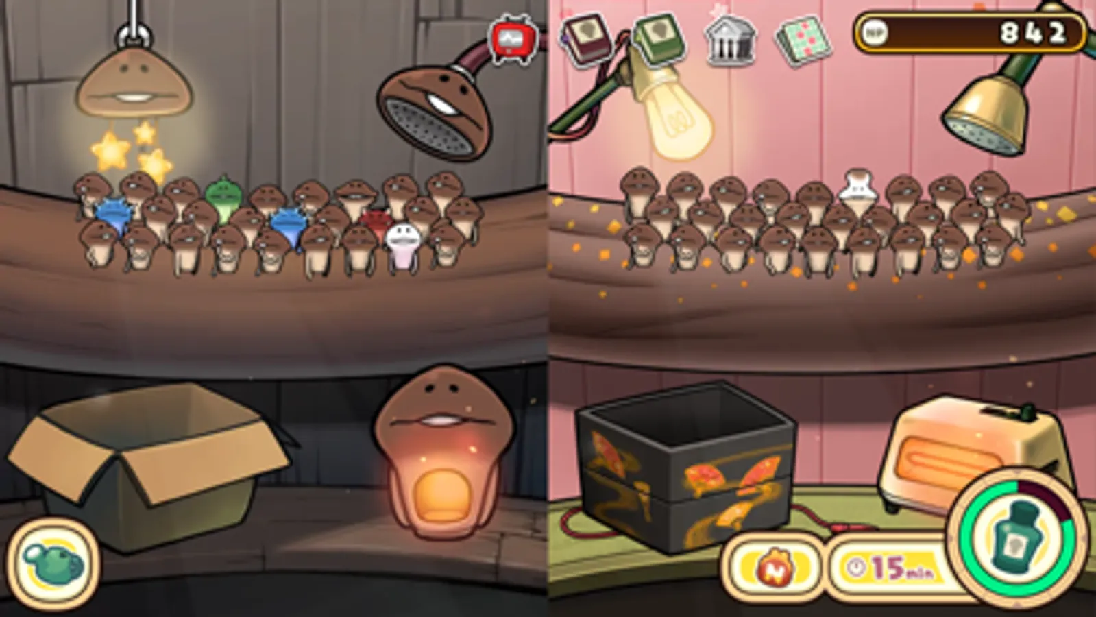 Feed and pick funghi from both gardens in one go! Harvest more funghi than ever before! What a rush!