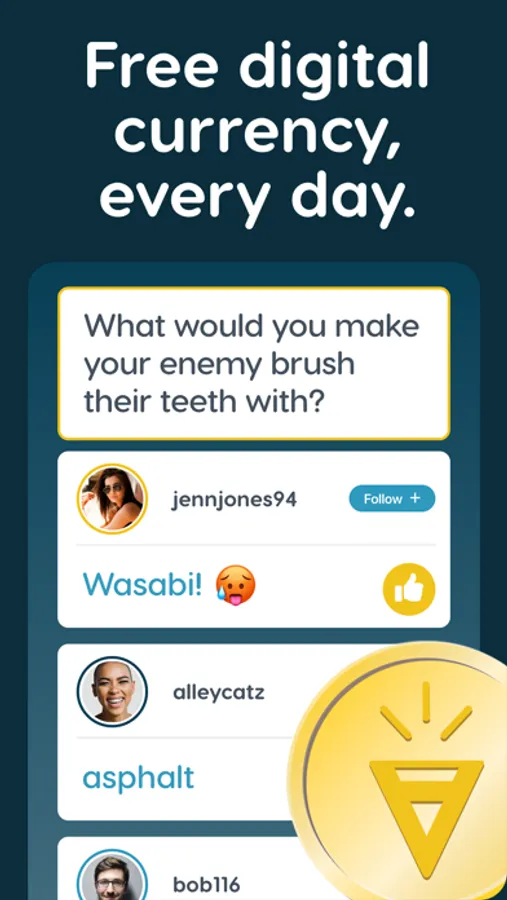 1. Answer a question ONCE a day sent to all app users around the world and EARN COINS.