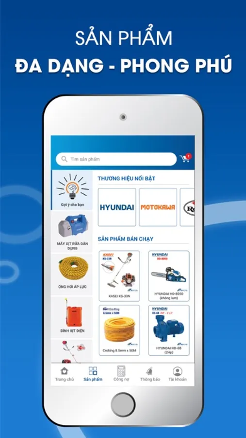 - SẢN PHẨM: danh mục sản phẩm máy móc, thiết bị, phụ tùng cực kỳ đa dạng.