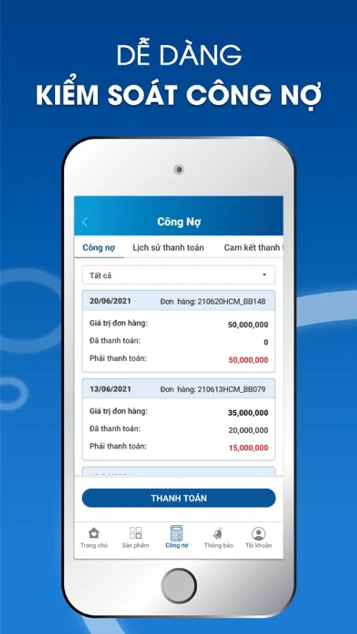 - TIẾT KIỆM THỜI GIAN: theo dõi và quản lý đơn hàng, công nợ, lịch sử giao dịch, lịch sử thanh toán, … rõ ràng và chính xác.