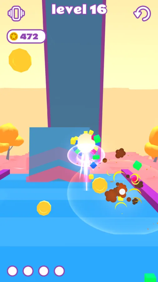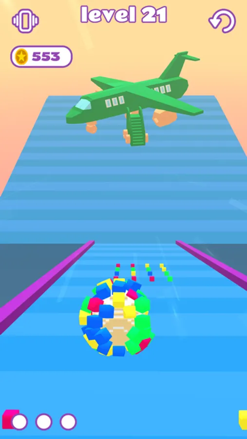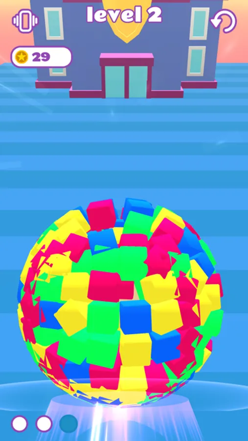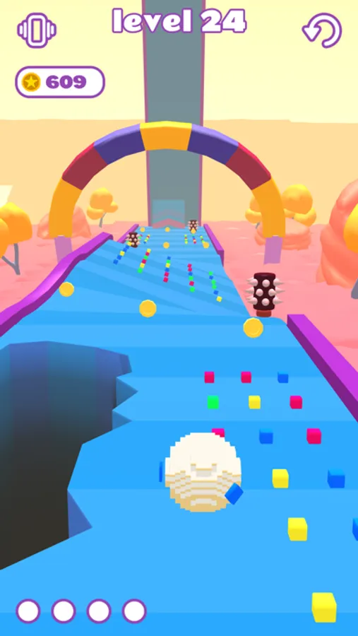 Control a ball rolling down the hill. Collect all cubes on your way to become bigger, avoid falling into the holes and hitting traps. Smash the building below with super big ball!