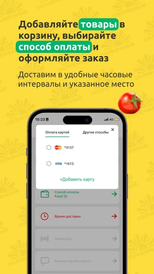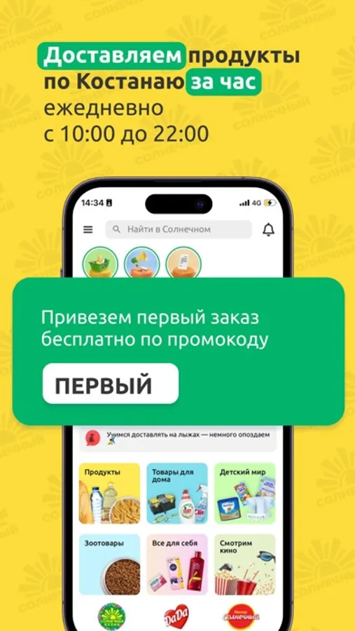 Любой товар, купленный через приложение «Солнечный», будет доставлен в удобные для вас часовые интервалы! Доставка осуществляется до двери день в день, по Костанаю и в прилегающие населенные пункты с 10:00 до 22:00.