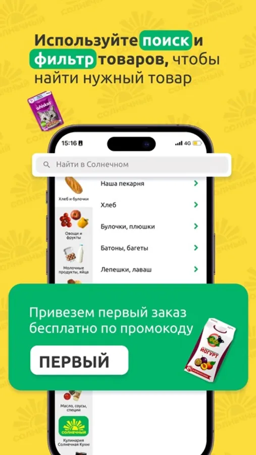 В нашем приложении Вам доступны для покупки более 25 000 наименований продуктов питания, детских и бытовых товаров. Если нужного товара не окажется, то мы предложим Вам замену.