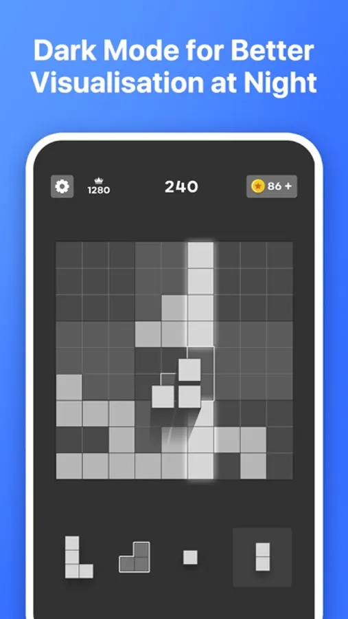 - Color themes. Choose between a minimalist cube block game or a classic wooden block puzzle.