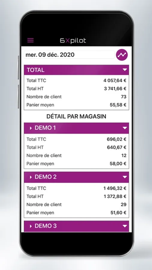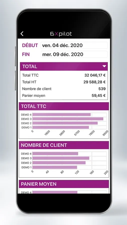 Chiffre d’affaire quotidien, à la semaine, au mois ou à l’année, ventes nettes, ventes prévisionnelles, graphiques, jusqu’au détail des tickets, l’application a pensé et anticipé tous vos besoins en un seul service propriétaire lié au dispositif de caisse intégrale 6Xpos.