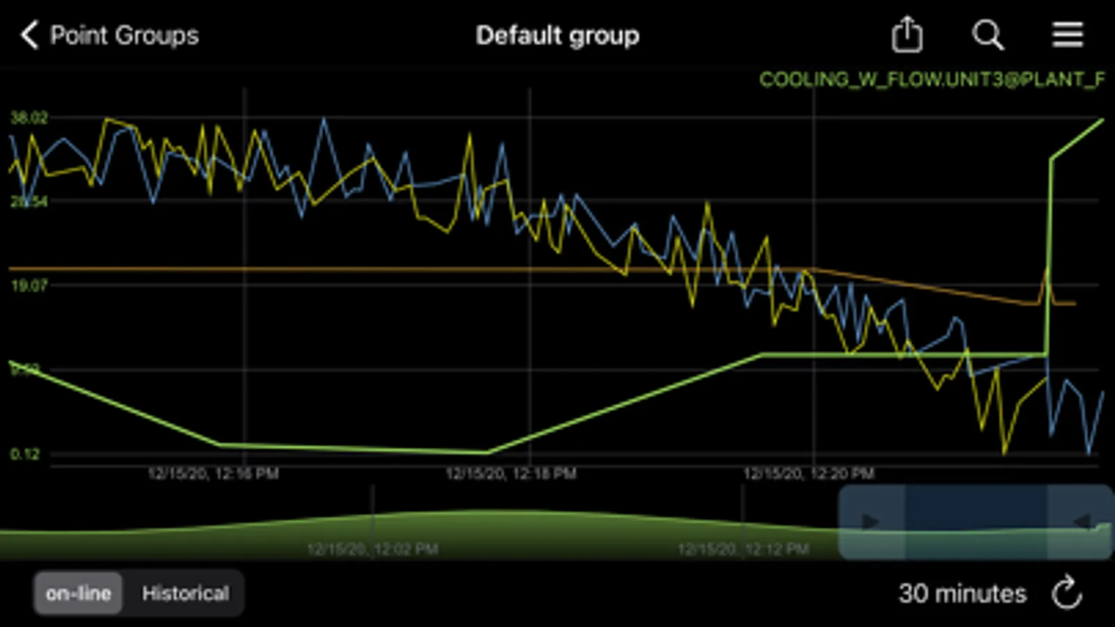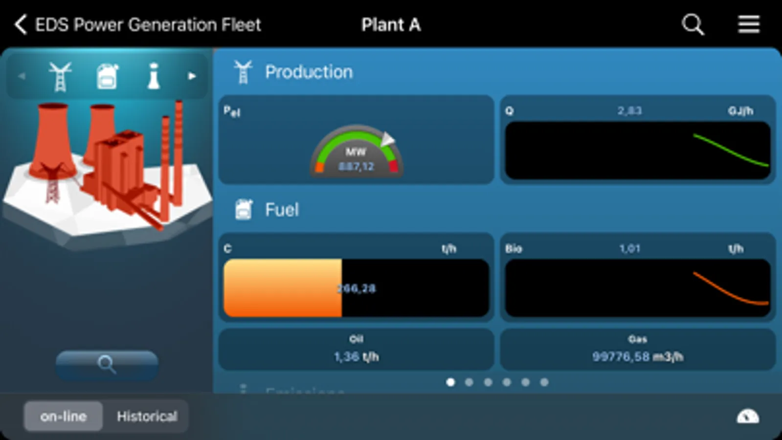 Note: EDS Viewer App is pre-configured to connect to EDS Server virtual plant for real-time and historical data. To design your own dashboards using data from your control system please visit our App Support page and request an EDS Server installation.