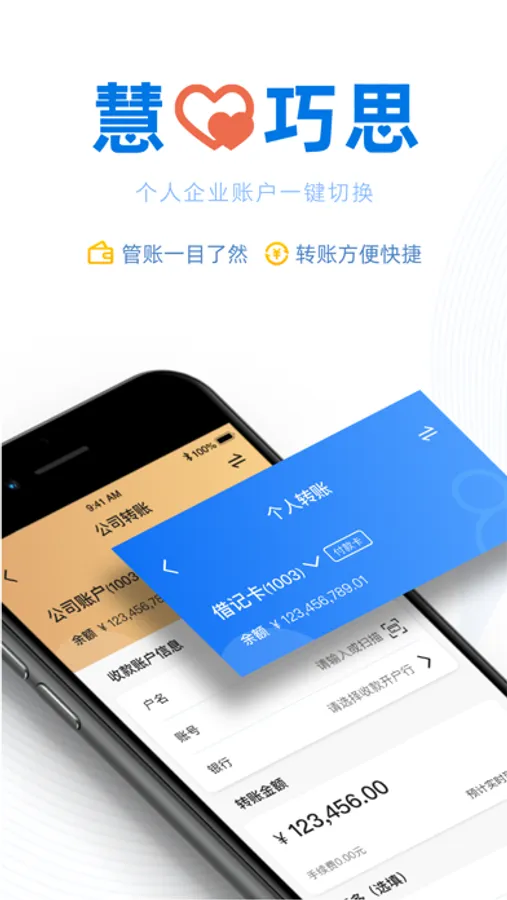 -资产账户:个人与企业账户的一键切换,资产账户一目了然;