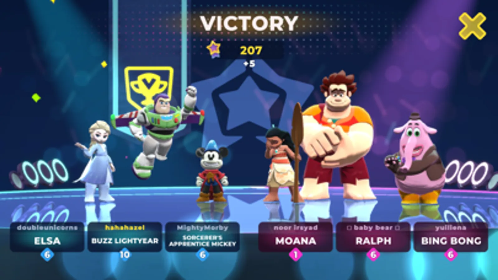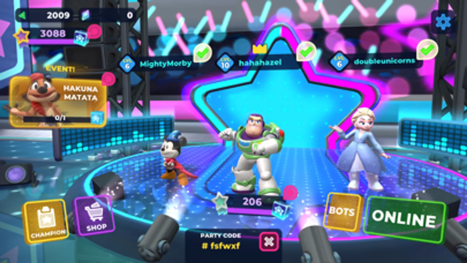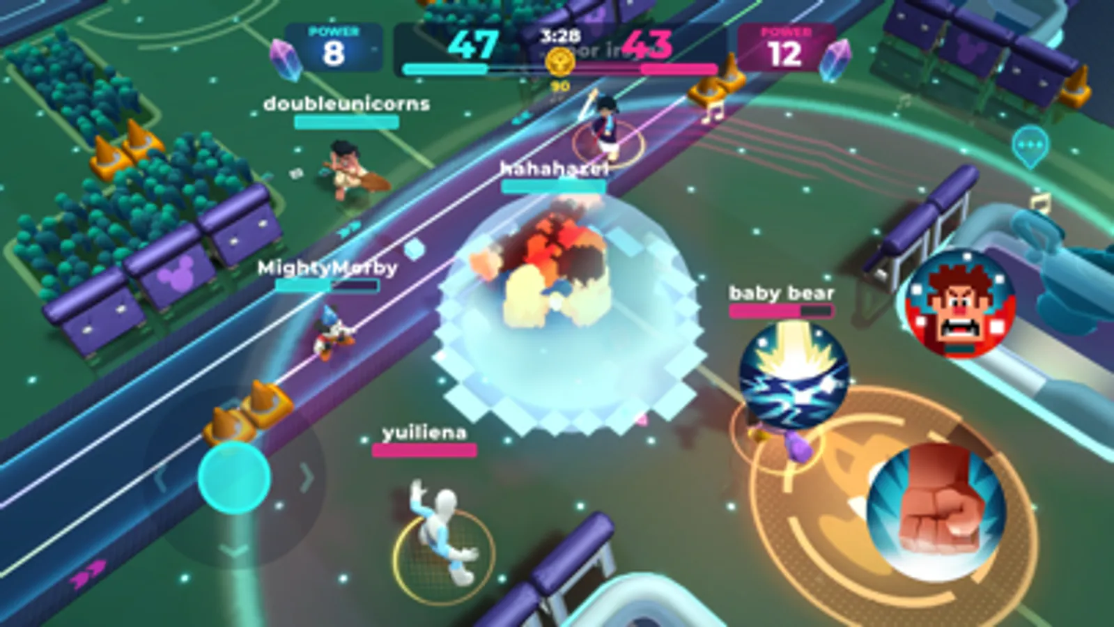Cue the lights! Hear the fans roar! Disney Melee Mania calls all worthy competitors to step into the spotlight! In this dazzling Arcade battle arena, your holo-team of rumble-ready Disney and Pixar champions competes in fast-paced 3v3 multiplayer battles. From Wreck-It Ralph, Elsa and Mickey to Frozone, Moana, Buzz Lightyear (and beyond!), choose from multiple holographic Disney and Pixar champs and rack up points with their unique skills. Embrace the chaos of dodging obstacles while brawling in fun and frenzied close-combat competition.