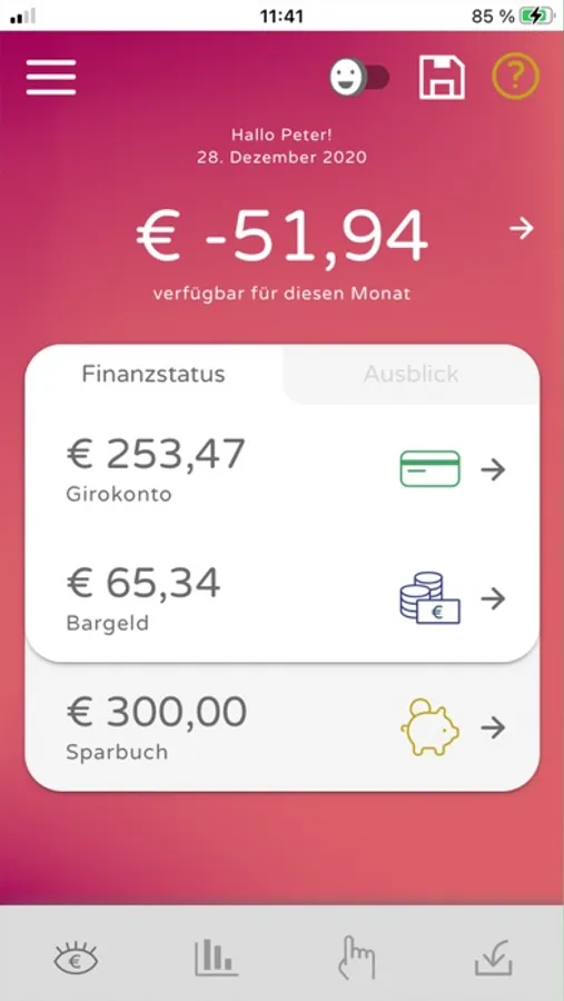 m€ins könnte dein Assistent in Sachen Geldleben werden. Die App bietet dir einen schnellen und akkuraten Überblick über deine Finanzen. Wie viel Geld ist noch übrig? Wie sehen deine Ausgaben und Kaufgewohnheiten aus? Wo kannst du Sparen und wie kannst du deine Ziele erreichen?