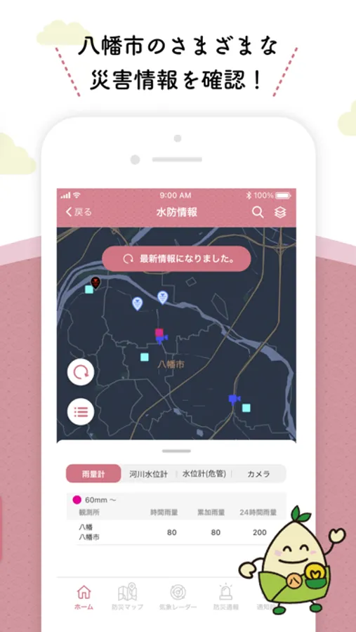 ・雨量情報、河川やダムの水位、カメラなどの表示