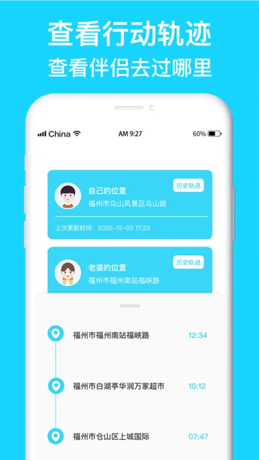 -记录伴侣的行动轨迹,去过哪里都知道。给TA最好的关怀。