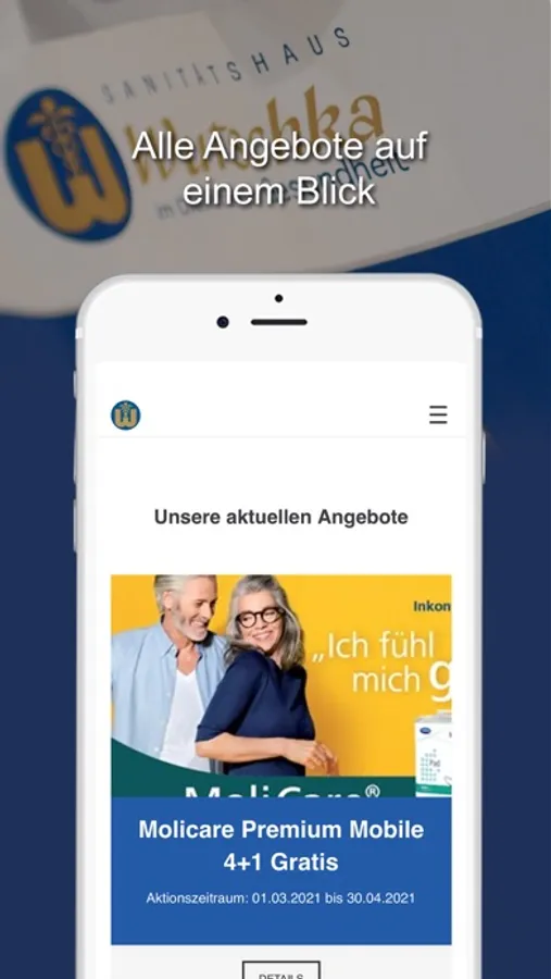 Die Sanitätshaus Wutschka-App von hello again ist eine Kundenbindungs-App, die für alle iOS Smartphones verfügbar ist.