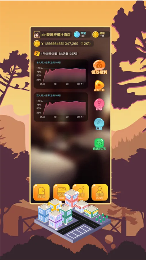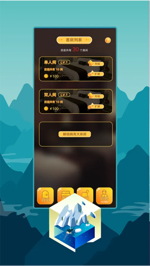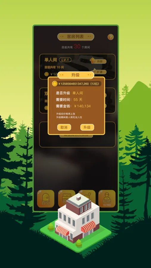 这是一款以升级、扩建、招聘、盈利为核心玩法的模拟酒店经营游戏。