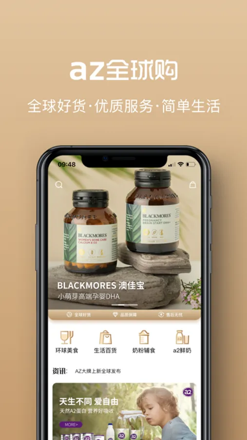 提供跨境电商社交服务,通过海外直采+自营保税仓模式;az全球购从保税区发货、海外直邮多种海淘模式让用户自由选择,轻松购遍进口母婴用品,进口美妆,进口美食、进口营养保健品。我们挑选全球大牌产品,a2、万宝嘉格、麦卢卡、嘉宝等在这里我们为每一位分享达人从生产,采购,包装,物流提供一站式后勤服务,让您的海淘体验无与伦比