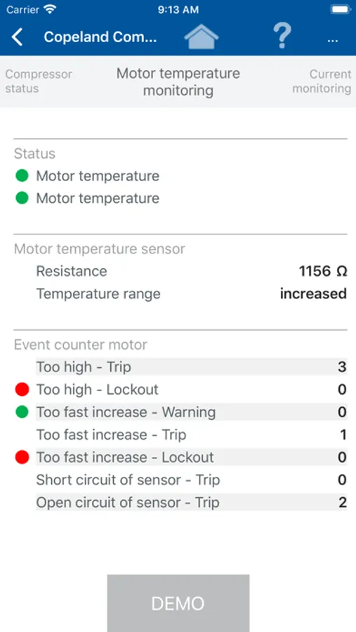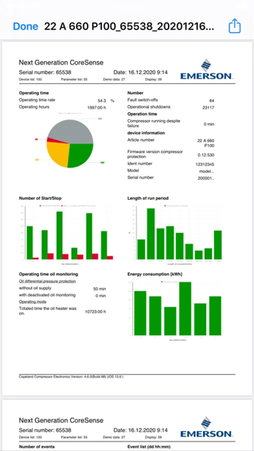 All semi-hermetic compressors featuring Copeland™ compressor electronics technology can be easily connected to the app via USB or Bluetooth. A complete overview of the actual compressor data, historical data or error list can be accessed at a touch of a button.