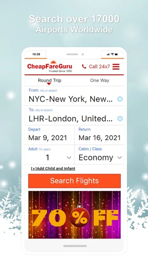 CheapFareGuru app is a super easy and comprehensive travel app that helps customers search, compare, and book cheap flights from 470+ airlines and to 17678+ airports worldwide on both domestic and international travel.