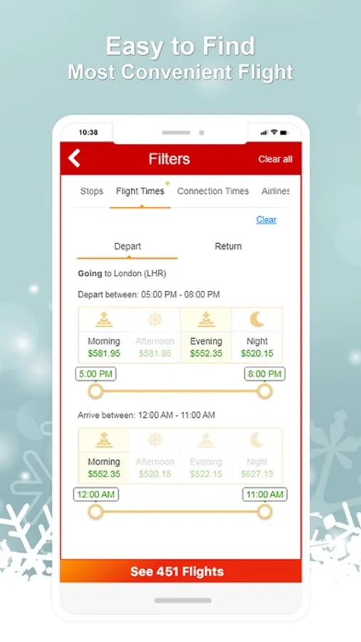 - State of the art search filter that sorts flights that fit your price range & meet your preference for airport, airlines, number of stops, and flight timings.