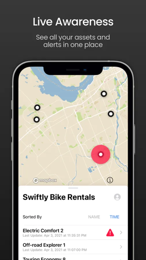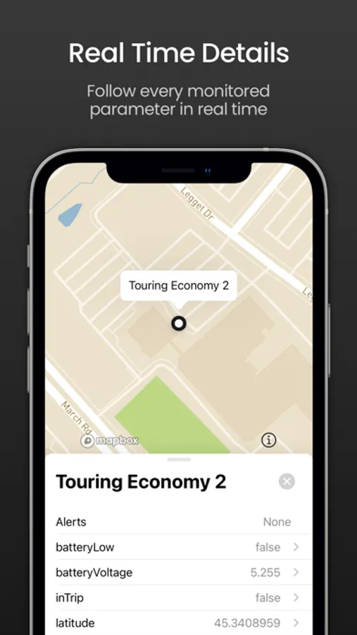 • Movement and data-driven alerts: Receive push notifications, and real-time in-app updates, when equipment moves or when properties of your equipment reach pre-configured conditions.