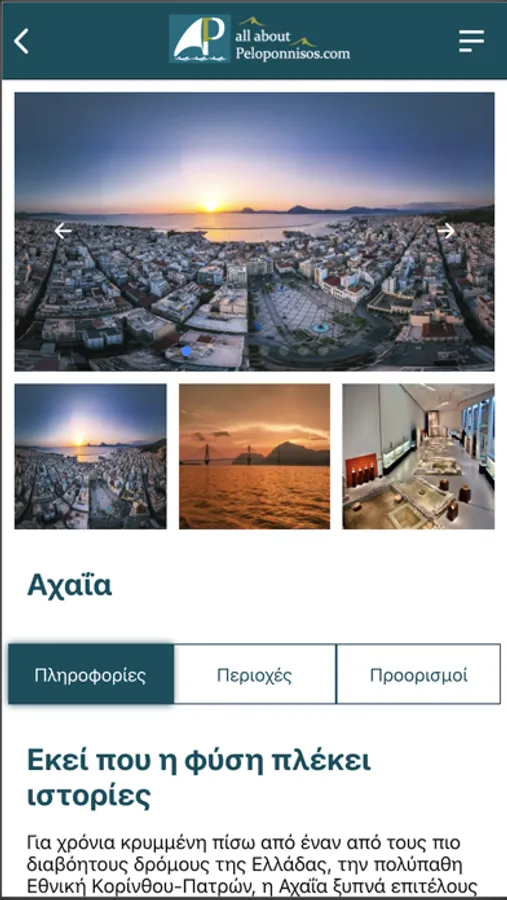 All about peloponnisos is an interactive travel guide to the Peloponnese. You will get to know all the destinations of the Peloponnese and you will find suggestions for travel, activities, attractions, beaches etc. You will find suggestions for hotels and direct booking as well as suggestions for gastronomy and entertainment. Get to know all the areas of Peloponnese and the experiences they have to reveal to you and start planning your trip to the Peloponnese from the official guide of the Peloponnese hoteliers.