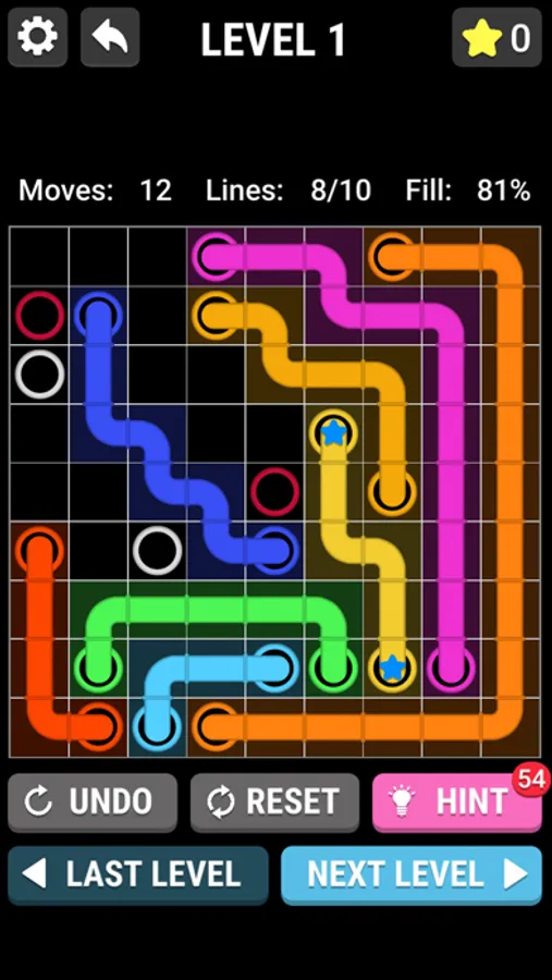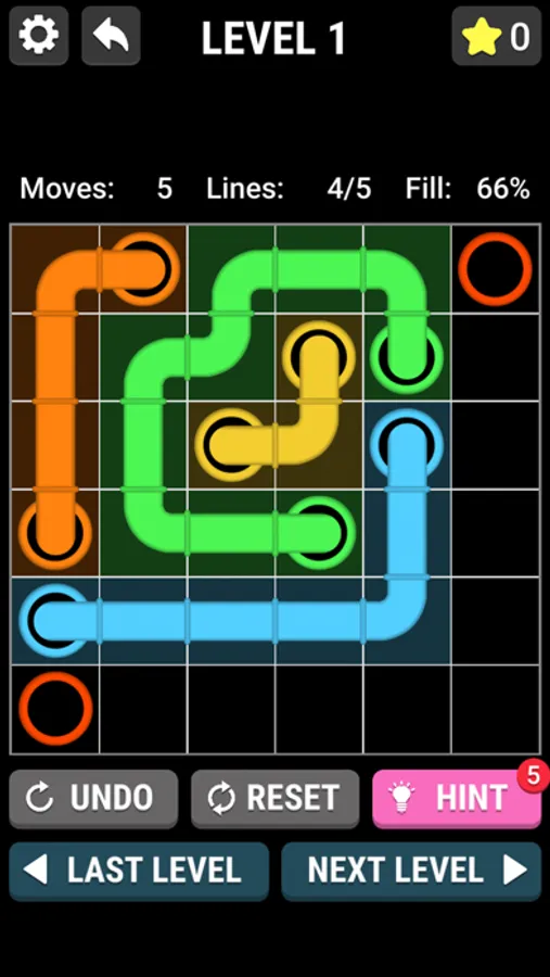 The objective is to connect the color pipes by drawing line between them.Difficulty is determined by the size of the grid. Pair all colors, and cover the entire board to solve each puzzle.