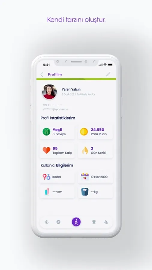 Ayrıca uygulama içerinde attığınız adımlar ile seviyenizi belirleyebilir, çeşitli puanlar kazanabilir ve yeni serüvenler yaşayabilirsin.