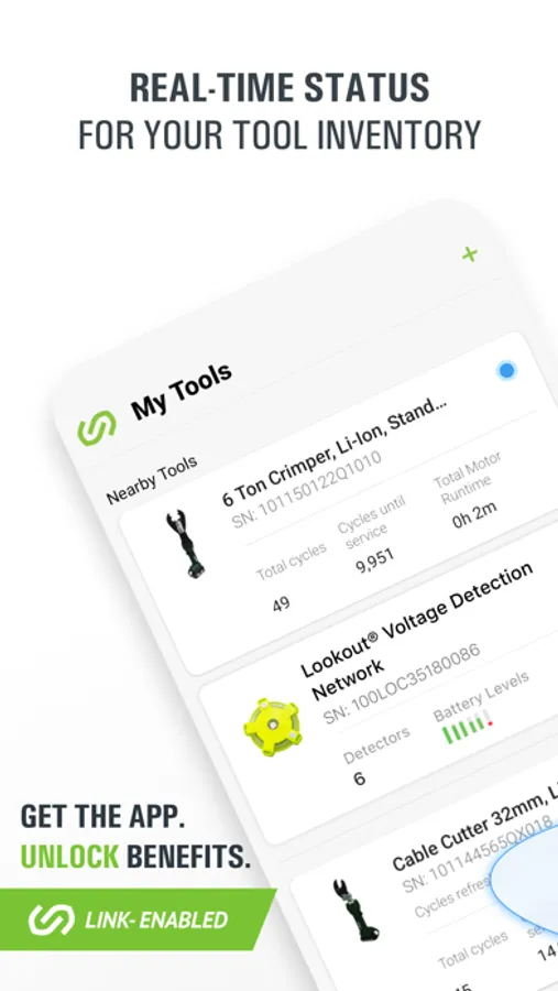 Introducing Greenlee Link, a new mobile platform that interfaces with Greenlee® tools equipped with Bluetooth technology. Registration is quick and easy and the app provides valuable real-time data on your phone. Greenlee Link is a one-stop shop for valuable tool resources. Find your closest service centers, reference support documents and access instructional videos. Sign up today to start working faster… and smarter.