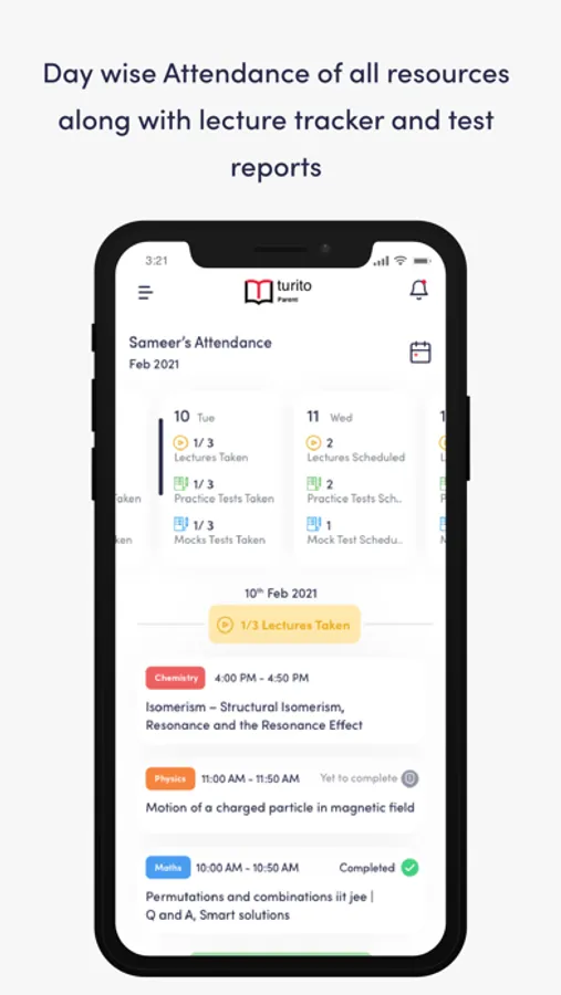 Turito Parent App is designed for Parents to provide them complete visibility into their child’s progress and performance, along with insights and recommendations to empower them in improving the child’s learning process. The app provides real-time updates about lecture attendance, daily practice tests, and mock test results with detailed attempt analysis to help parents stay on top of the child’s day-to-day activities on the Turito - Live Learning App.