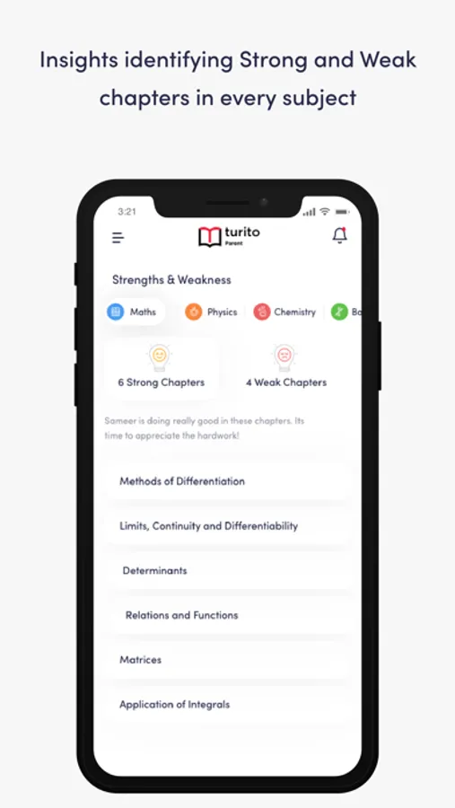 The app aims to provide parents with complete analysis and insights to help children in their learning process and keep them updated on the child’s journey with Turito.