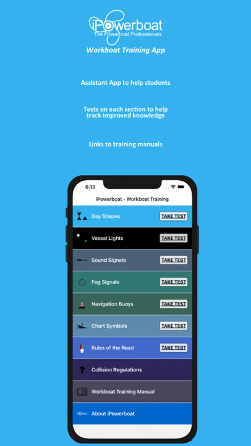 The primary aim of the Workboat Training App is to act as a learning resource by providing reference material containing essential skills, knowledge and guidance for those operating in a maritime environment. The App has a useful test for each section for you to see how well you are progressing with your maritime knowledge.