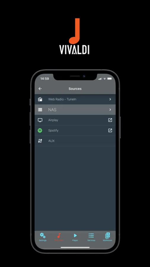 With Vivialdi you can play, control and enjoy your favorite songs, choosing among various sources.