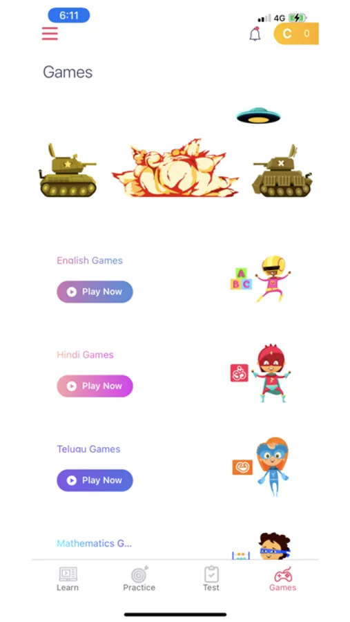 Games: - Learning is fun. Our carefully designed games help students learn their weak concepts while having fun. Games includes Maths games, Vocabulary games, science facts, general knowledge.