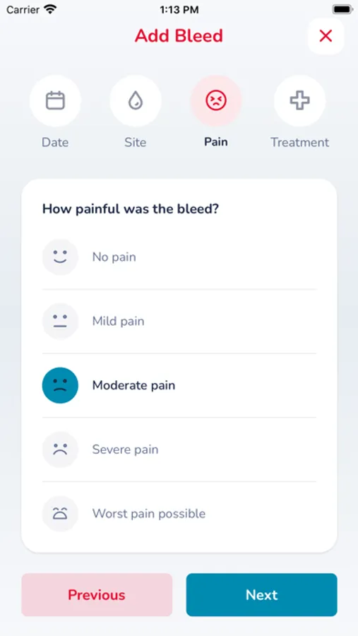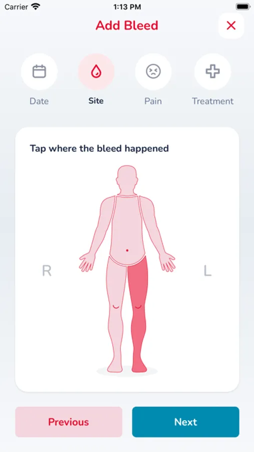 • Access your bleeds, treatment and health status records.