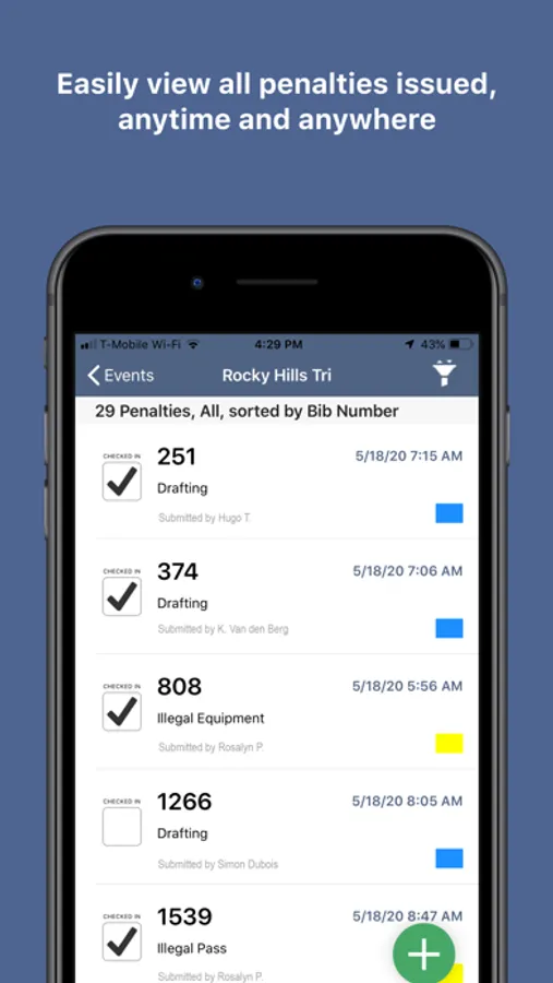The app for the triathlon official that documents, sorts and communicates penalty details among the entire officiating crew including penalty tents, eliminating paper penalty books and logs, creating more efficient referees and significantly decreasing clerical errors.