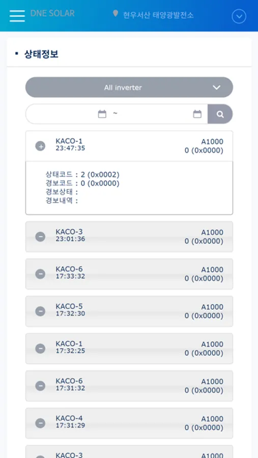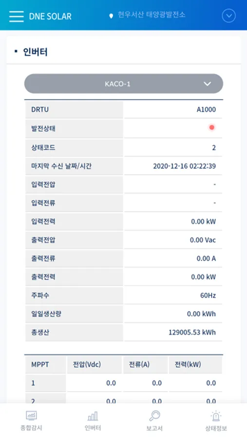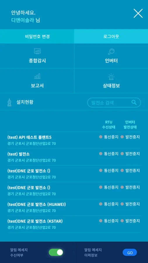 디엔이솔라 RTU 모니터링 시스템(DRTU20) 고객을 위한 태양광 모니터링 애플리케이션입니다.